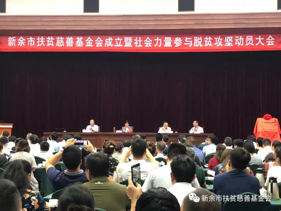 2019年8月13日上午9:00,新余市扶贫慈善基金会成立暨社会力量参与脱贫攻坚动员大会在会展中心多功能大厅顺利召开。