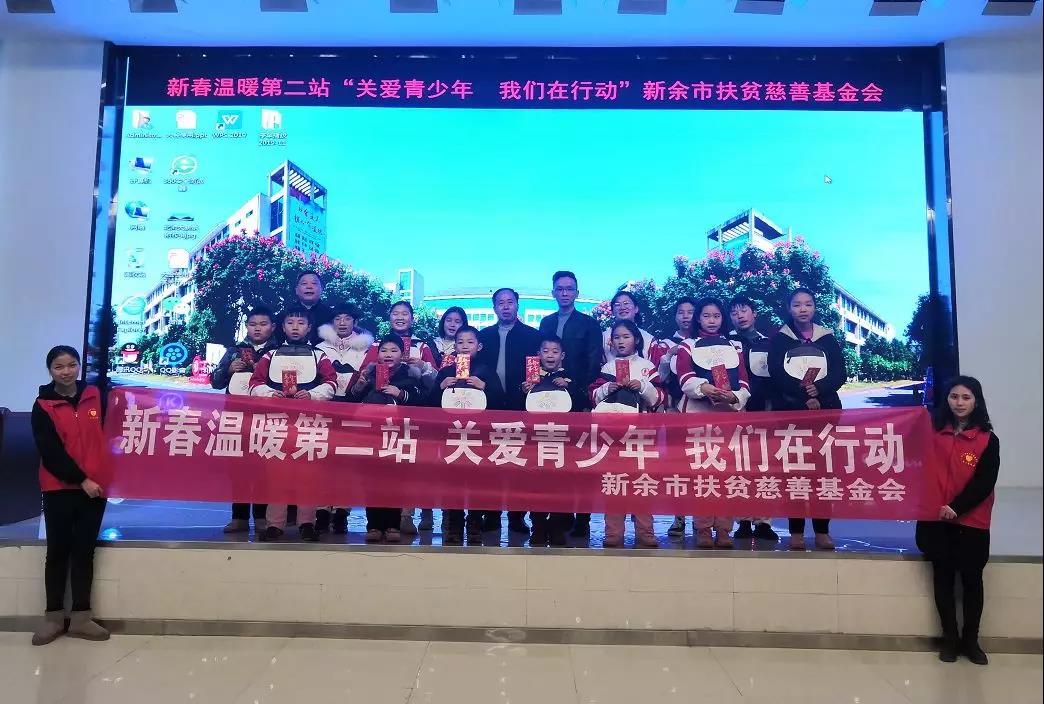 新余市扶贫慈善基金会于2020年1月14日上午十点,来到北京师范大学新余附属学校为20名小学、初中贫困生发放助学金、名著小书包以及文体用品。解决了从家门到校门的经济困难,为贫困学子们的美好明天筑梦加砖。