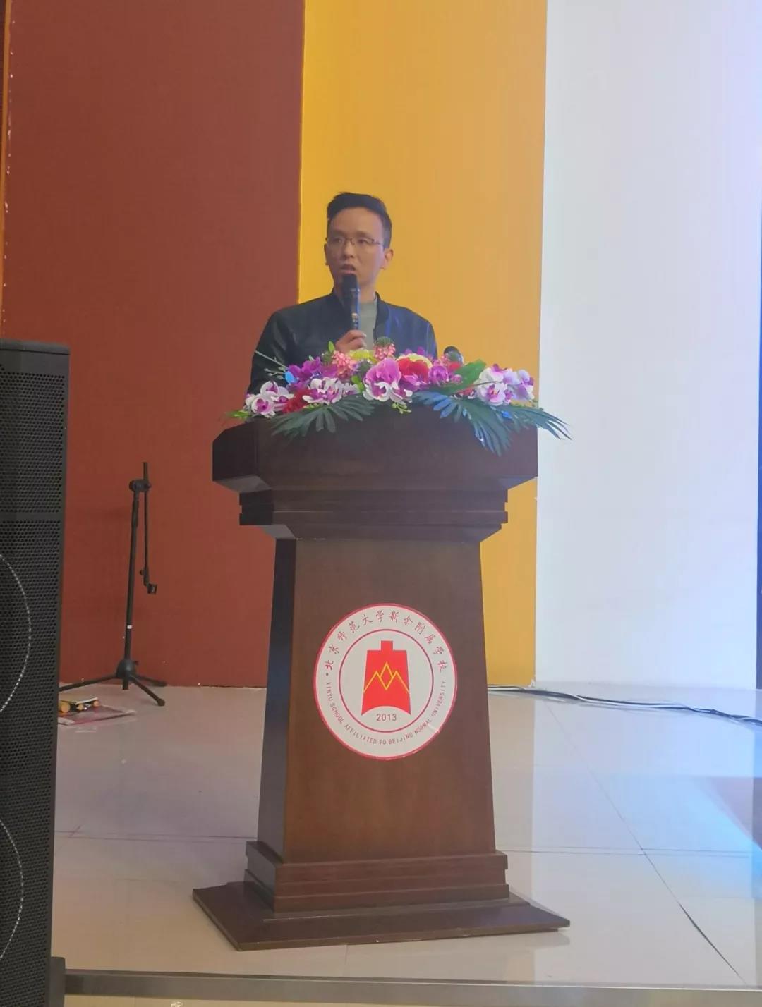 市扶贫慈善基金会秘书长助理彭予涵上台发言,希望今天受助的学生可以不畏贫困,好学上进,开开心心的过年。