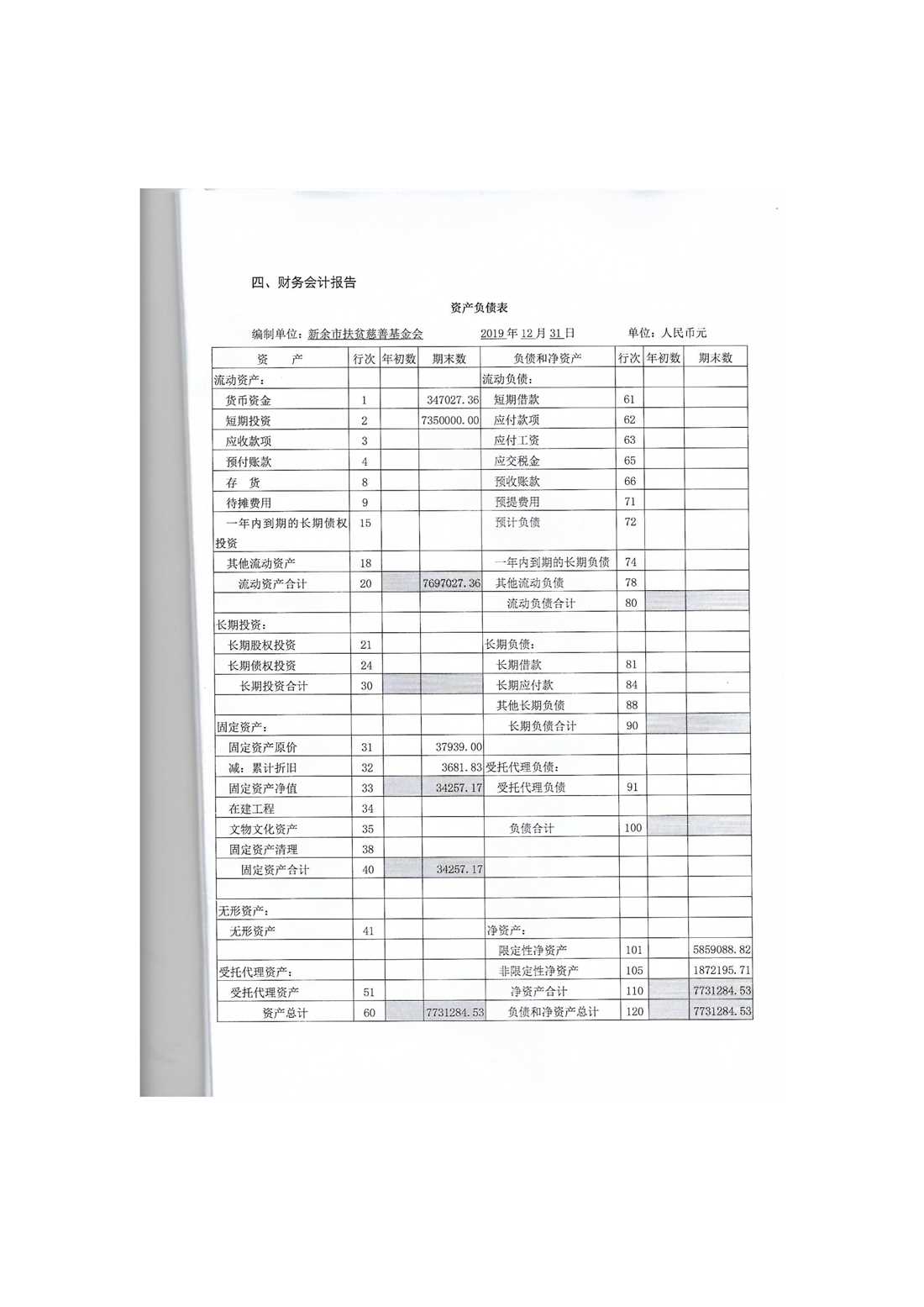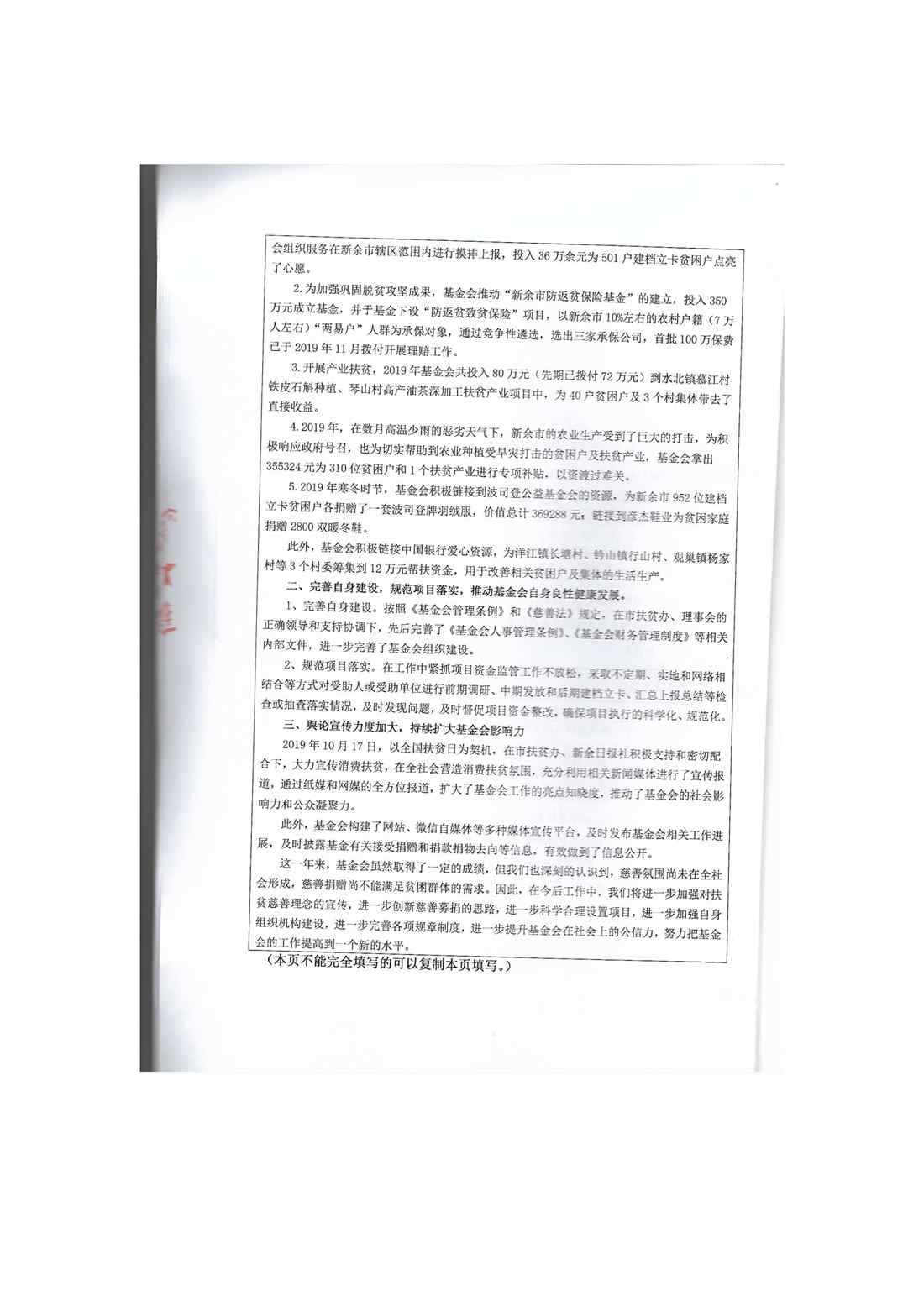 新余市扶贫慈善基金会2019年度工作报告