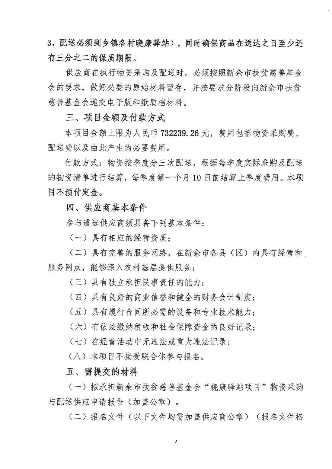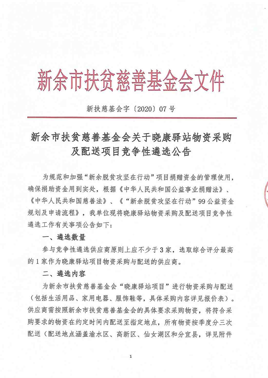 【重要通知】新余市扶贫慈善基金会关于晓康驿站物资采购及配送项目竞争性遴选公告