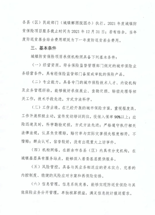 为了进一步巩固提升城镇脱贫解困成效,探索建立防止返贫致贫工作长效机制,我基金会现将2021年城镇防贫保险项目的磋商性遴选工作有关事项公告如下: