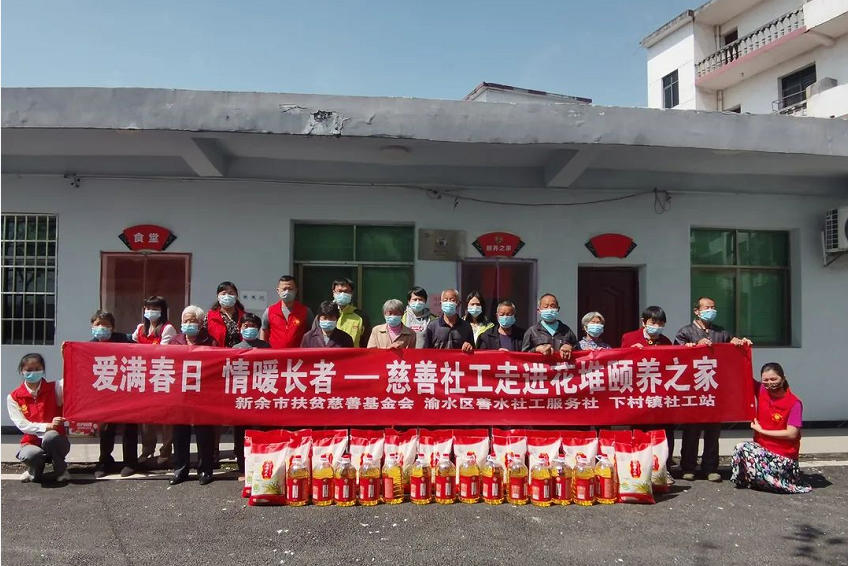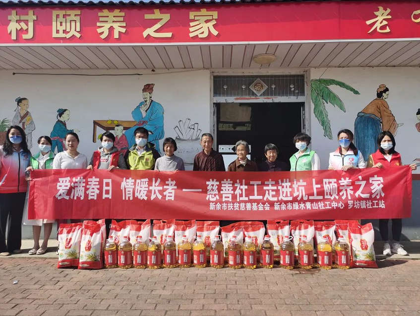 2022年4月9日上午9点,新余市扶贫慈善基金会联合新余市绿水青山社工中心、罗坊镇社工站在罗坊镇坑上村委开展“爱满春日 情暖长者——慈善社工走进坑上颐养之家”活动。