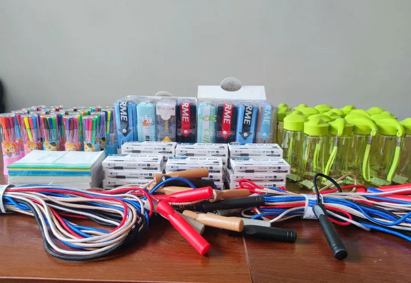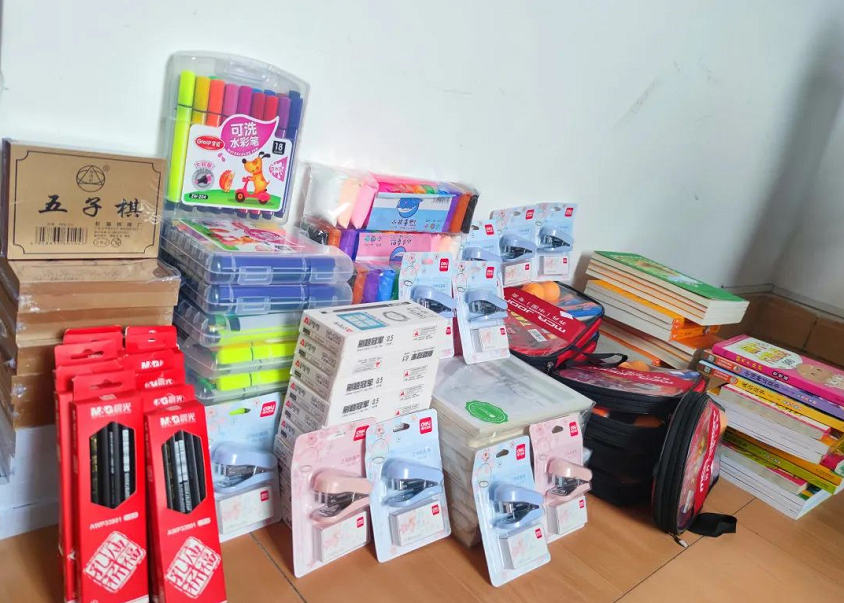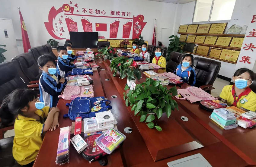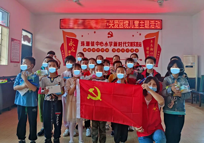 2022年5月31日上午,基金会联合渝水区爱家社会工作室来到珠珊镇中心小学,为这里的21名困境学生发放笔袋、跳绳、水杯等节日礼物,让学生的节日心愿得以实现,为即将到来的“六一”儿童节送去了温暖。
