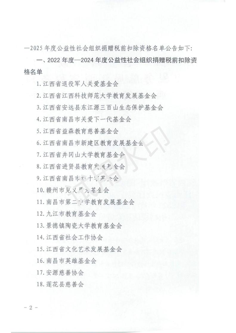 关于2023-2025年度公益性社会组织捐赠税前扣除资格名单的公告