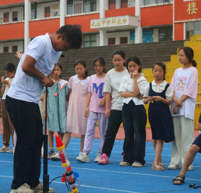 30日下午,志愿者们来到水北中学,带领这里的30名学生们一起做了《长城炮》、《水火箭 》、《逆流而上》等精彩的科学实验,开启学生们通往科学世界的那扇神奇大门,使他们在求知的美好年纪里,尽情畅享科技的奇妙与独特魅力。