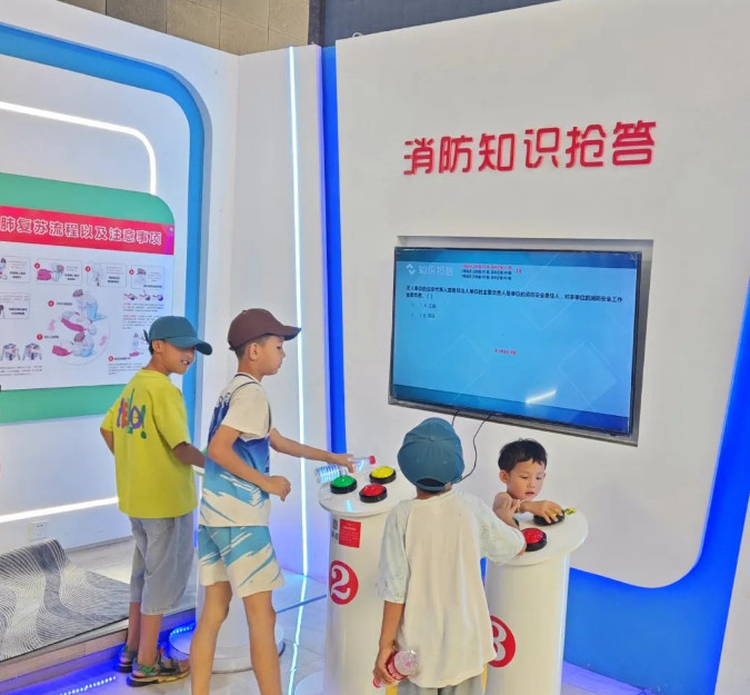 活动中,项目团队特别邀请了仰天岗消防大队专业讲师,共同组织了一场“消防安全专题授课”,为礼珠村的孩子们讲解消防安全知识,帮助孩子们了解和掌握消防安全知识,提高自我保护能力。小课堂结束后,志愿者带领小朋友们来到科技馆的消防区域,通过一系列实践操作,孩子们能更好地掌握这些技能,也对消防安全有了更深入的了解。
