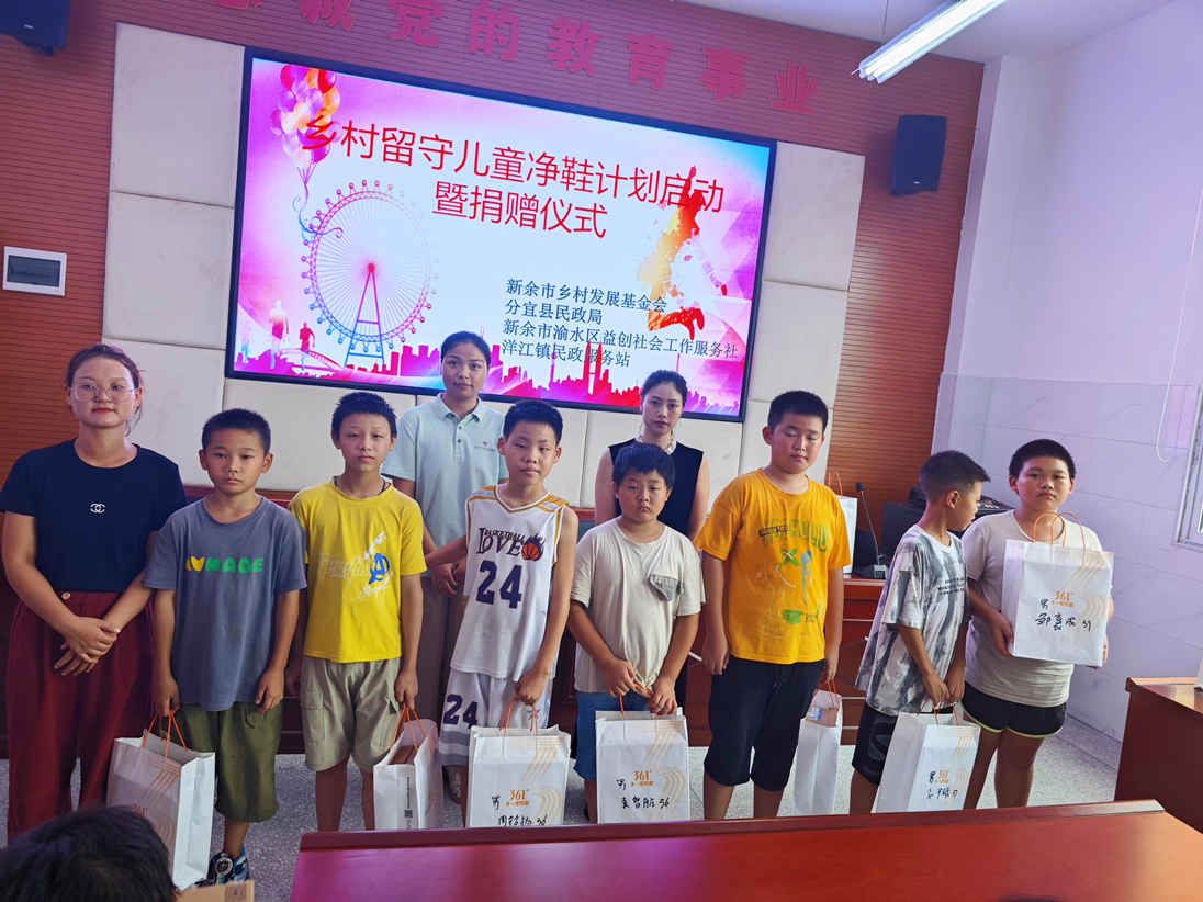 为了改善乡村留守儿童的生活条件与卫生情况,呵护他们健康成长养成卫生习惯。9月20日,我会联合分宜县民政局前往洋江镇中心学校举行乡村留守儿童净鞋计划启动暨捐赠仪式,活动共计发放50双品牌运动鞋总价值6000元。