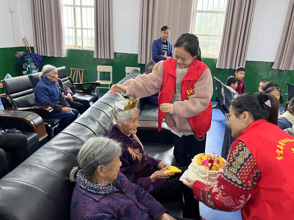 21日上午,志愿者抵达杨桥镇顾村一老一小幸福院,为老人们精心准备生日蛋糕和水果。活动期间志愿者询问了他们的健康状况和日常生活,引导老人做手指操活动。活动尾声大家纷纷向寿星表达祝福,祝愿他们福寿安康、生日快乐。老人们在欢声笑语中合影留念,一张张笑脸定格了这一温馨而美好的瞬间。