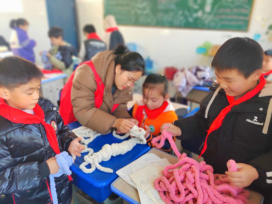 高岚乡中心小学的学生们在老师指导下,用自己的手指作为编织工具认真地编织。在编织过程中大家遇到了不少挑战,但他们并没有放弃,而是在老师和家长的鼓励下,耐心地调整、修正,逐渐掌握了编织技巧。经过一个多小时的努力,一条条色彩鲜艳、充满童趣的手指织围巾逐渐成形,温暖了他们的冬天。