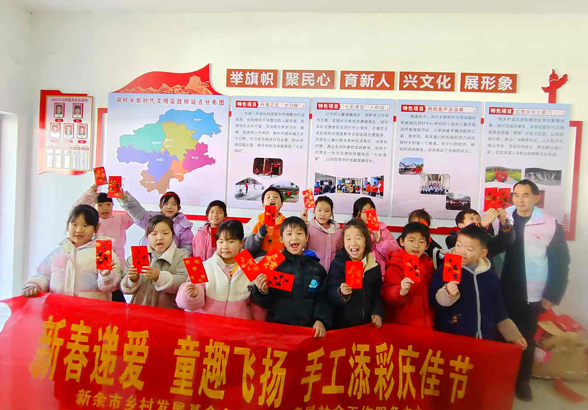 1月16日分宜镇,志愿者们前往水东村为孩子们带来了一场别开生面的新春体验。活动现场,孩子们热情高涨拿起拓印工具在红包上精心创作,将 “新年快乐” 四个字拓印得鲜艳夺目。最后志愿者为孩子们送上旺旺大礼包,寓意新的一年生活旺、身体旺。