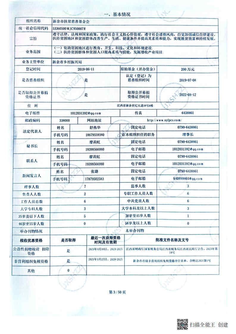 新余市扶贫慈善基金会2023年度工作报告