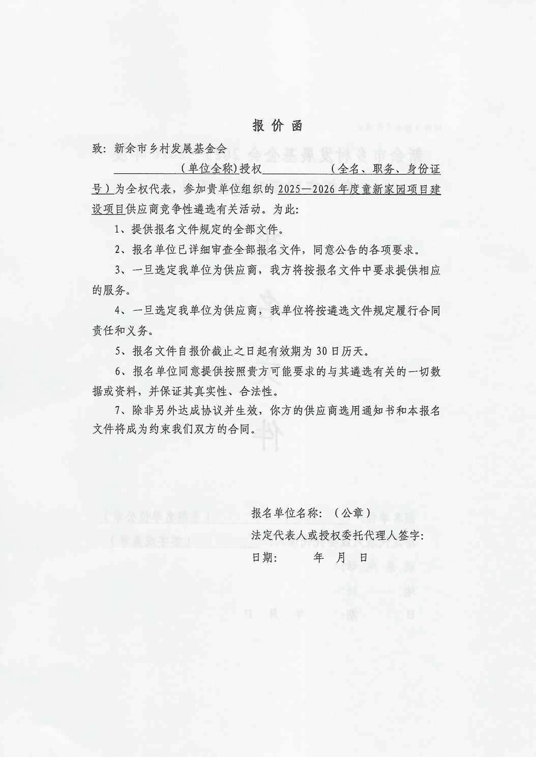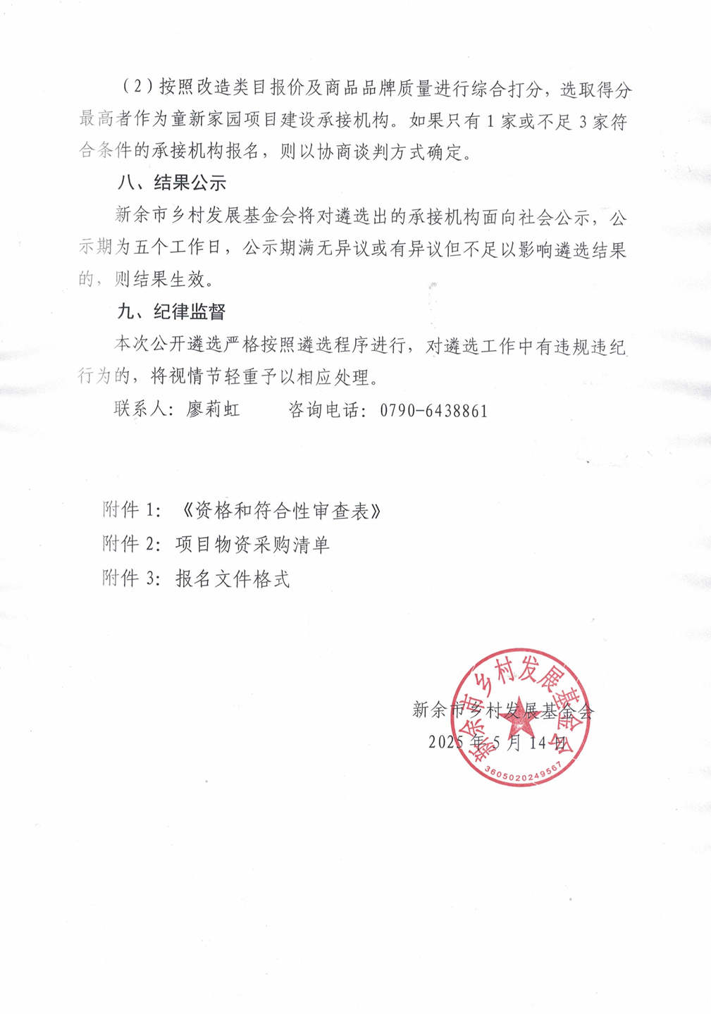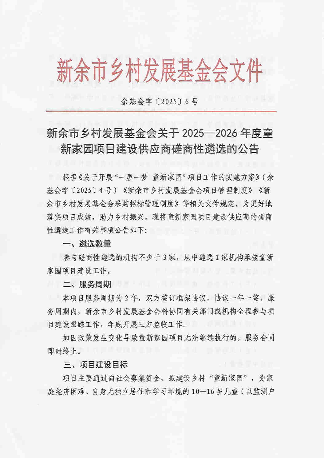 【重要通知】新余市乡村发展基金会关于2025-2026年度童新家园项目建设供应商磋商性遴选的公告