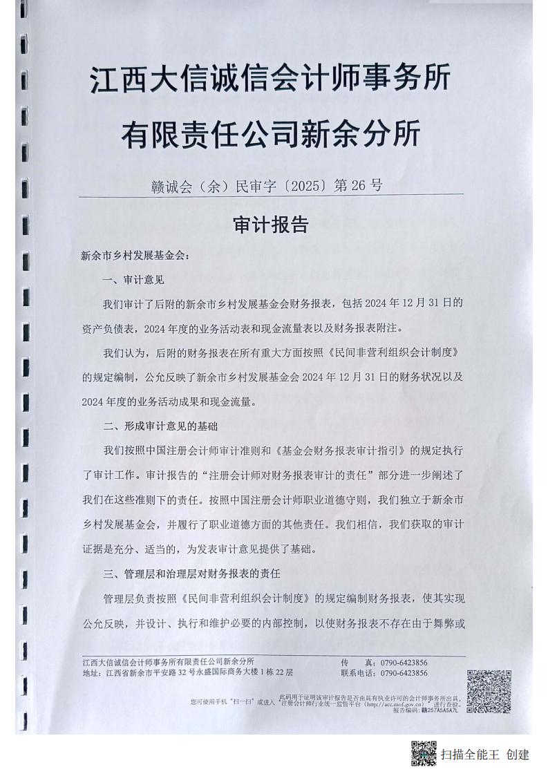 新余市乡村发展基金会2024年度审计报告