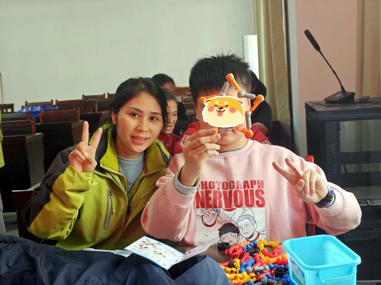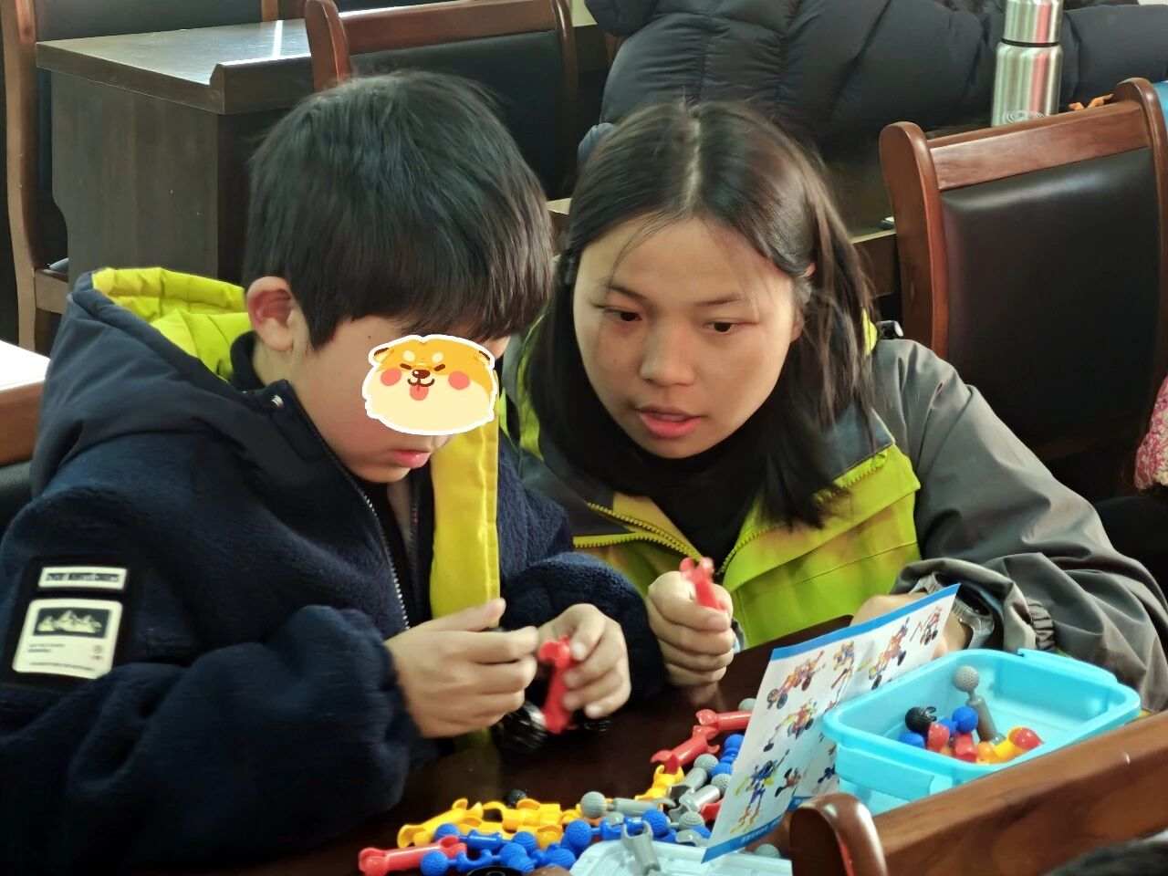 活动中,工作人员为孩子们分发积木,通过“一对一”的耐心引导激发他们的创意潜能。一个个小小的零件在孩子们的巧手下拼接组合,变成了形态各异的奇妙造型,童趣与想象力在指尖肆意迸发。